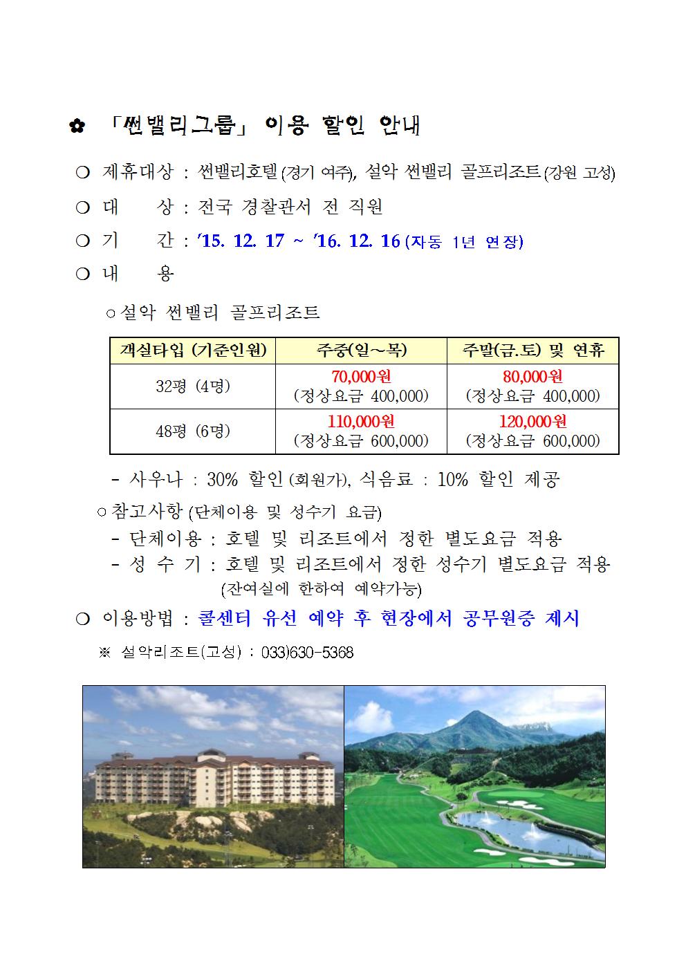 썬밸리 리조트(고성) - 숙박료 63~70% 할인 (경찰 제휴 할인)