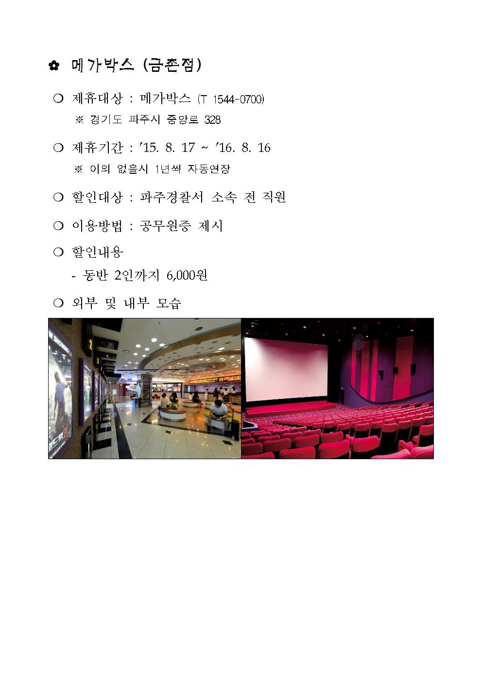 메가박스(금촌점) - 영화 할인 (경찰 제휴 할인)