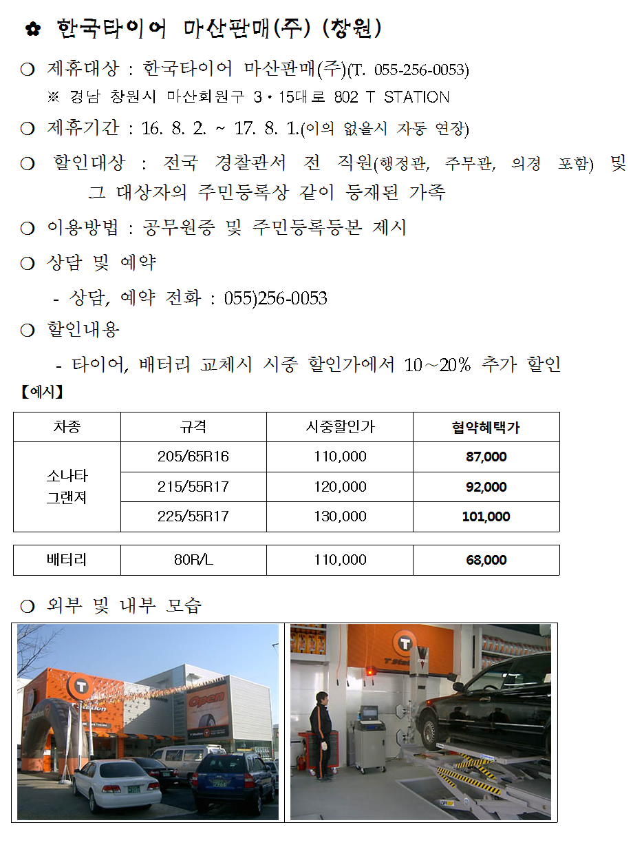 한국타이어(마산점) - 타이어, 배터리 10~20%할인 (경찰 제휴 할인)