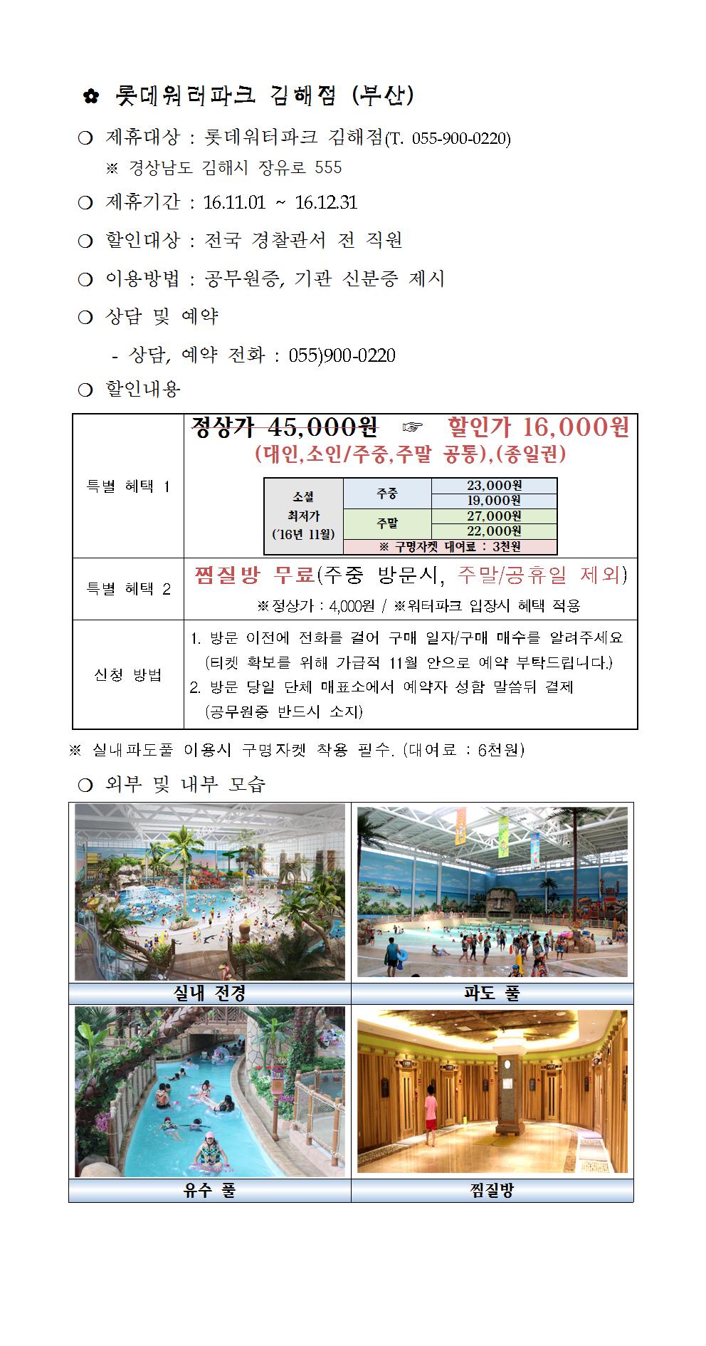 롯데워터파크 김해점 - 입장권 할인 및 찜질방 이용 (경찰 제휴 할인)