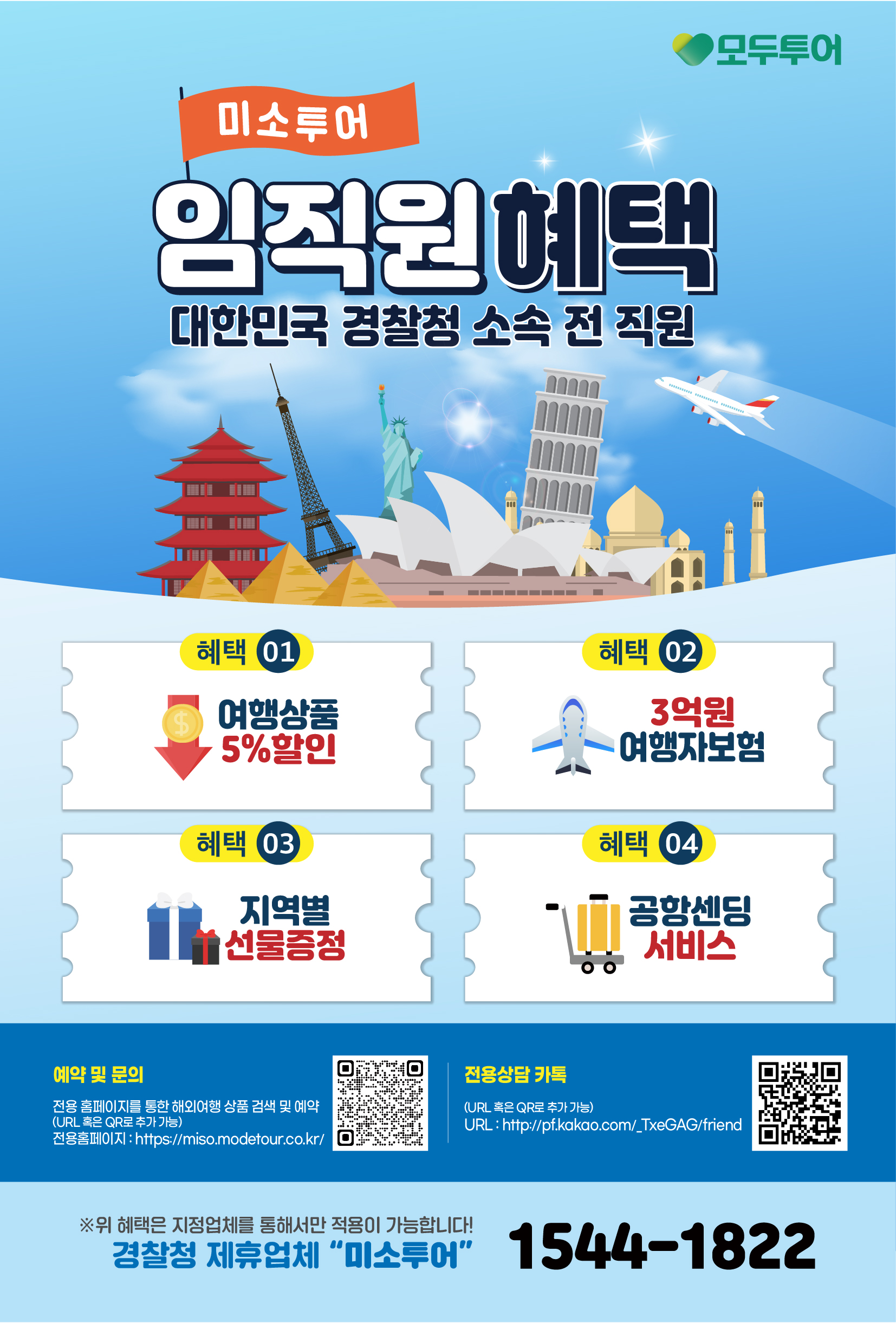 모두투어 (주)미소투어 - 해외패키지 5%상시 할인, 해외지역별 선물, 특가상품 할인율 적용 (경찰 제휴 할인)