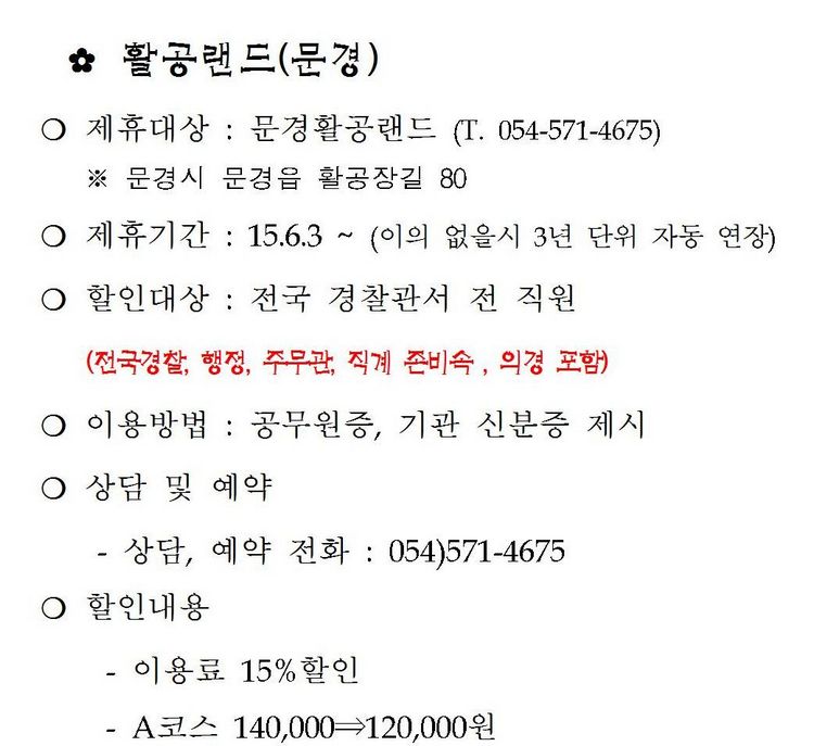 활공랜드(문경) - 이용료할인 (경찰 제휴 할인)