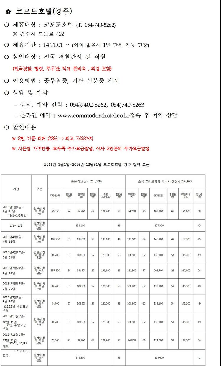 경주 코모도호텔 - 이용료 할인 (경찰 제휴 할인)