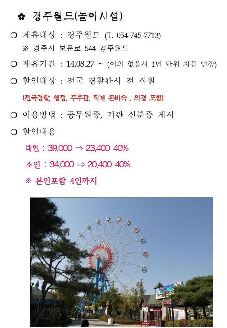 경주월드 - 이용료 할인 (경찰 제휴 할인)