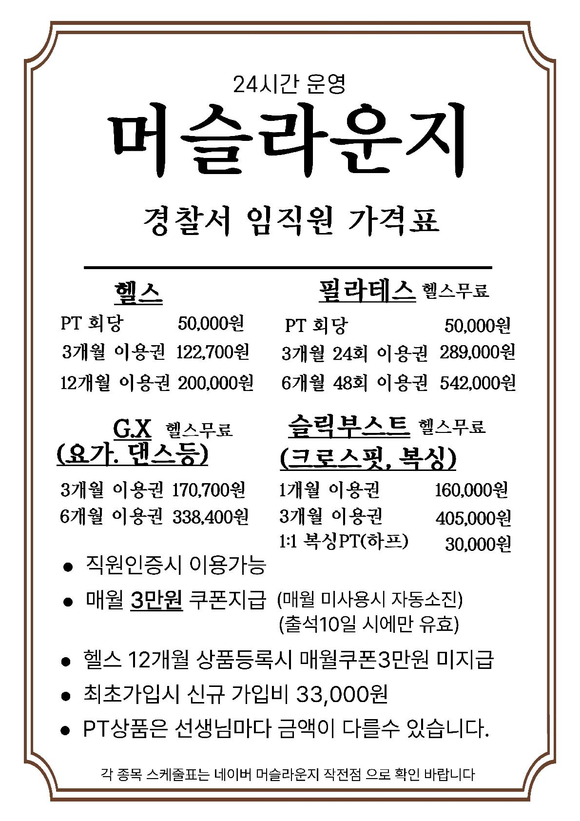 (주)머슬라운지 - 이용료할인 (경찰 제휴 할인)