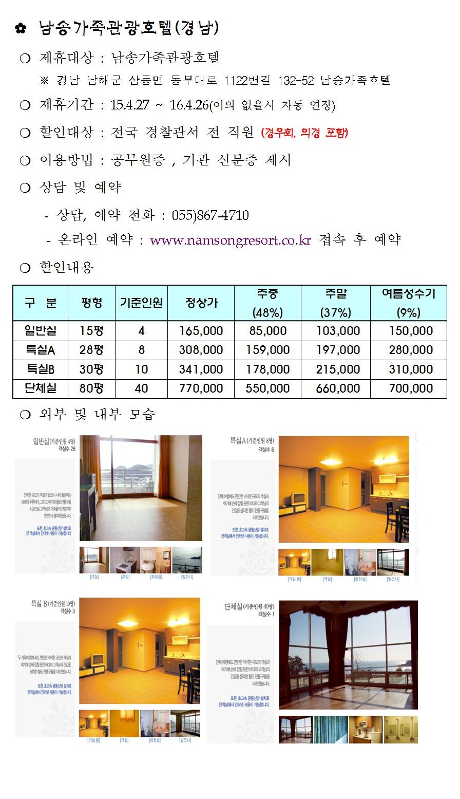 남송가족관광호텔 - 9~48%할인 (경찰 제휴 할인)