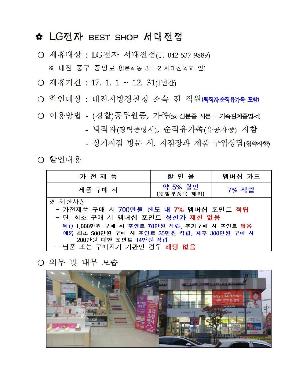 엘지전자 베스트샵(서대전지점) - 5%할인과 7%적립 (경찰 제휴 할인)
