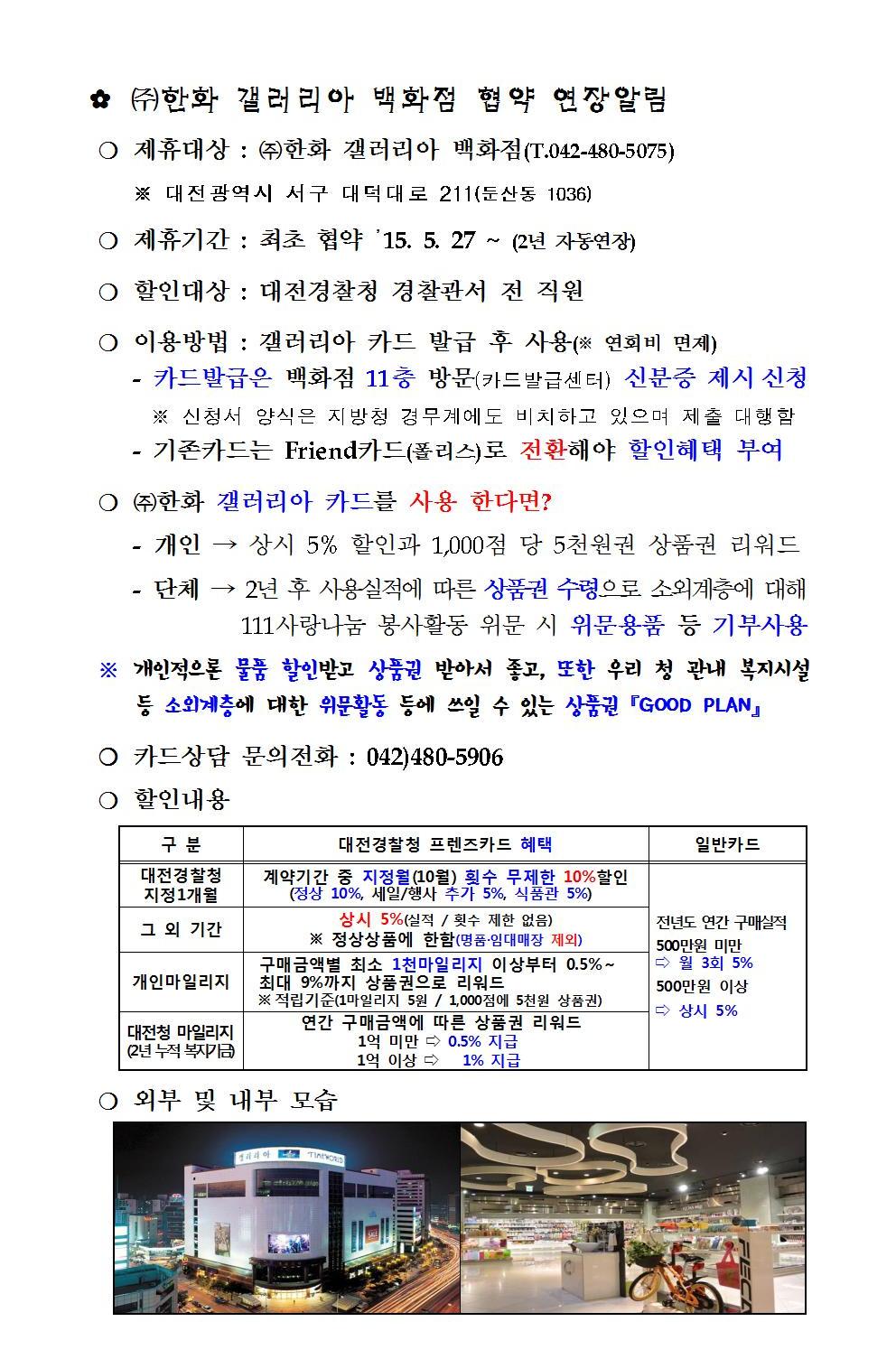 (주)한화 갤러리아 백화점 - 평상시 5%할인, 지정월(10월) 10%할인혜택 (경찰 제휴 할인)