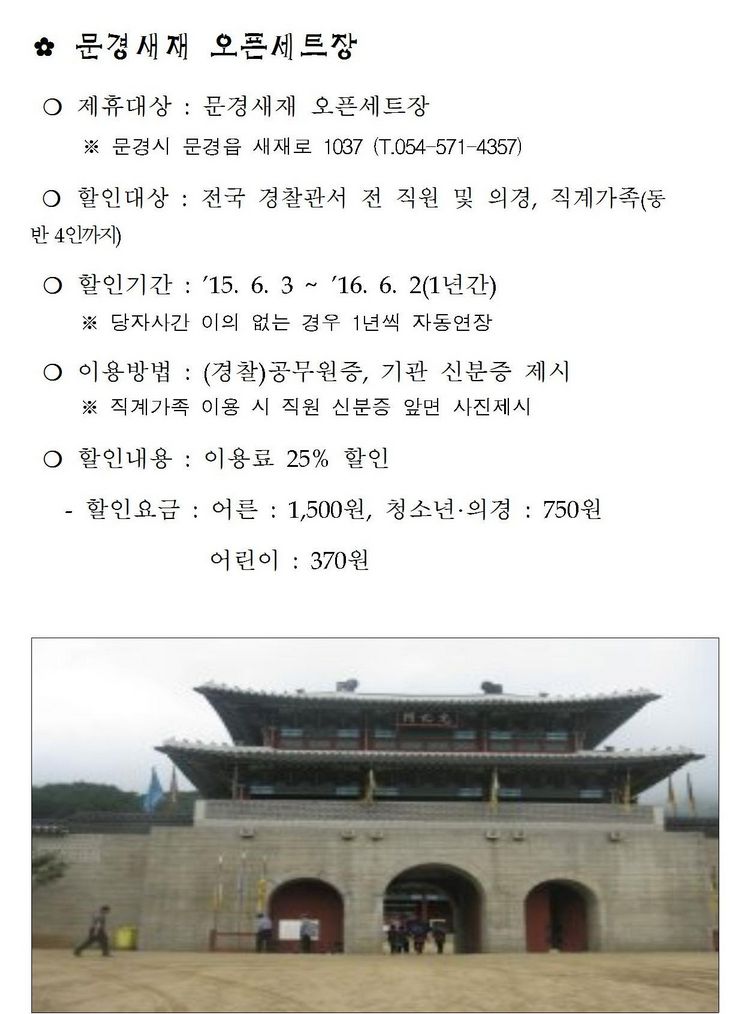 문경 새재오픈 세트장 - 입장료 할인 (경찰 제휴 할인)