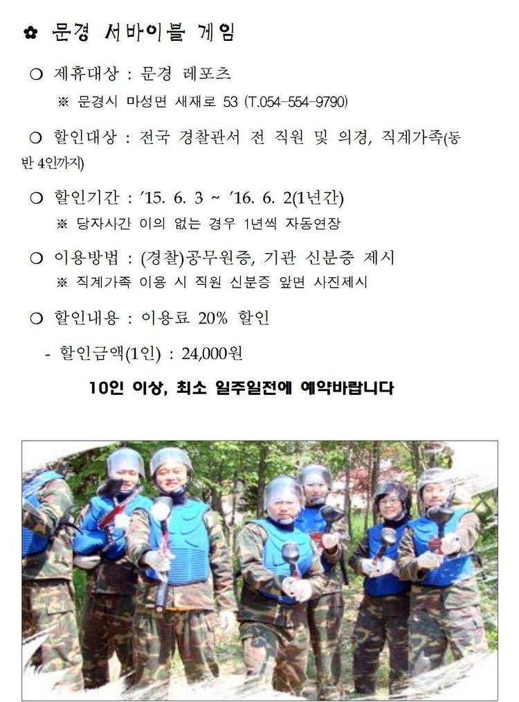 문경 서바이벌게임 - 이용료 할인 (경찰 제휴 할인)