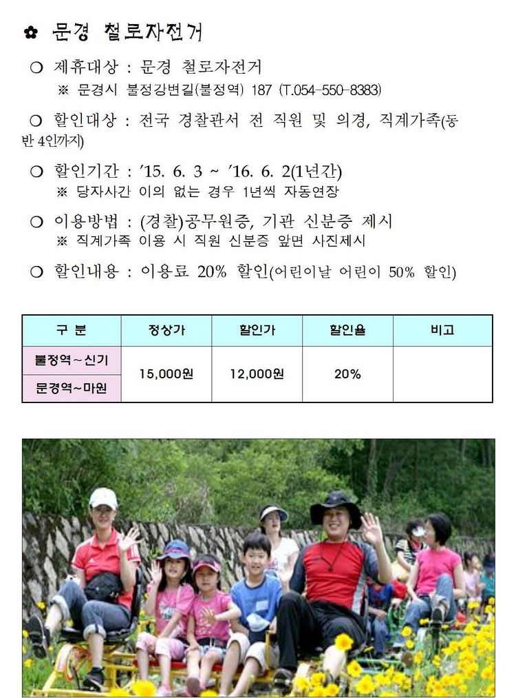 문경 철로자전거 - 이용료 할인 (경찰 제휴 할인)