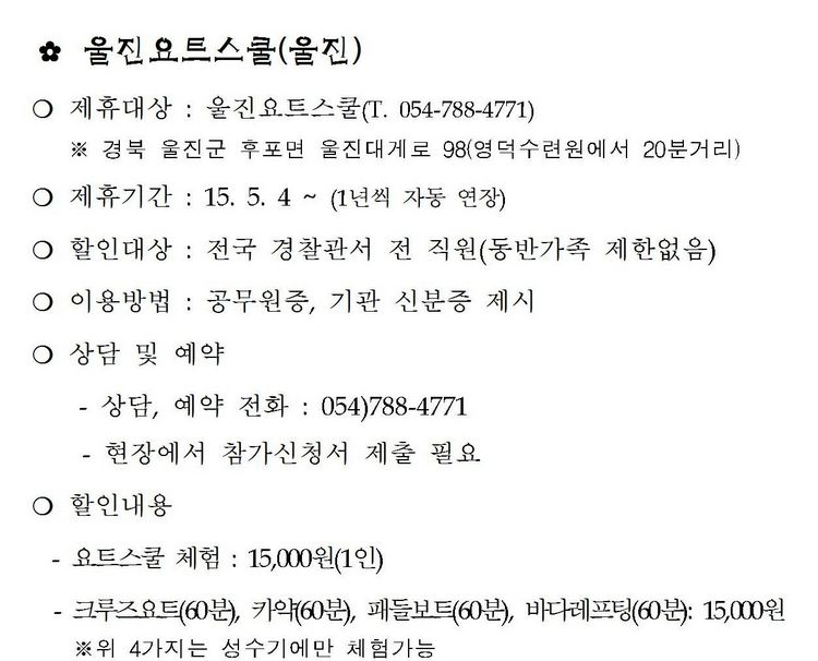 울진 요트스쿨 - 이용료 할인 (경찰 제휴 할인)