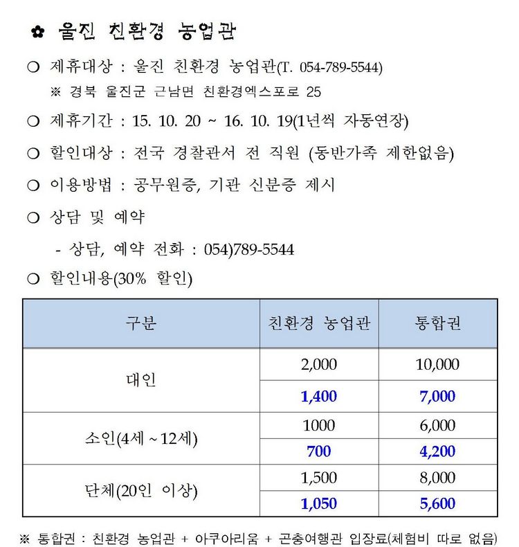 울진 친환경농업관 - 입장료 할일 (경찰 제휴 할인)