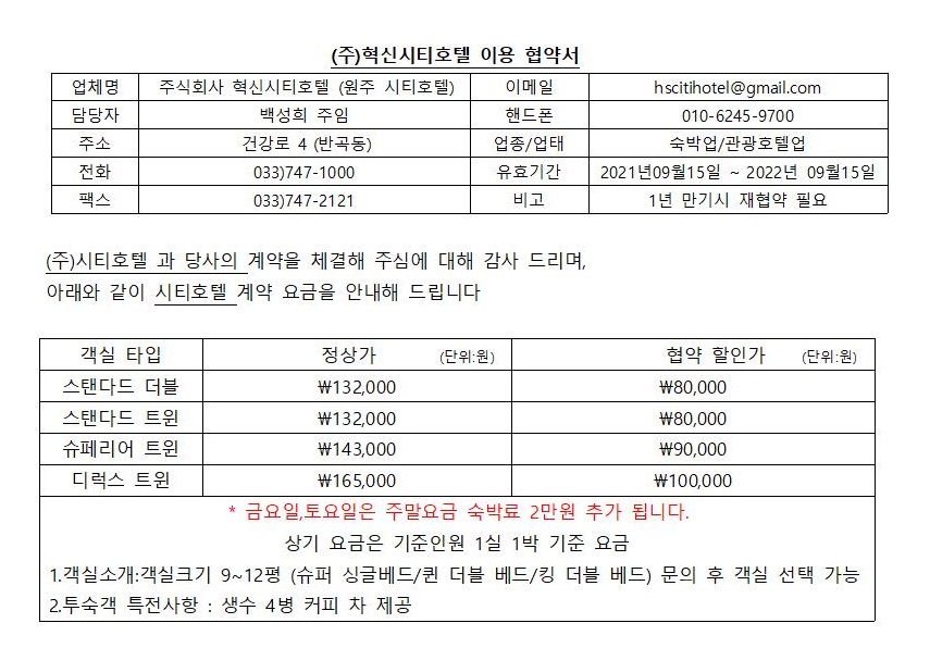 | 업체명 | 원주시티호텔 |