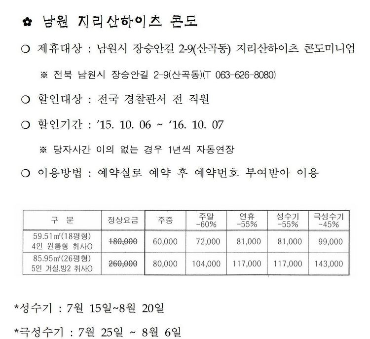지리산 칸콘도 호텔 - 숙박료 할인 (경찰 제휴 할인)