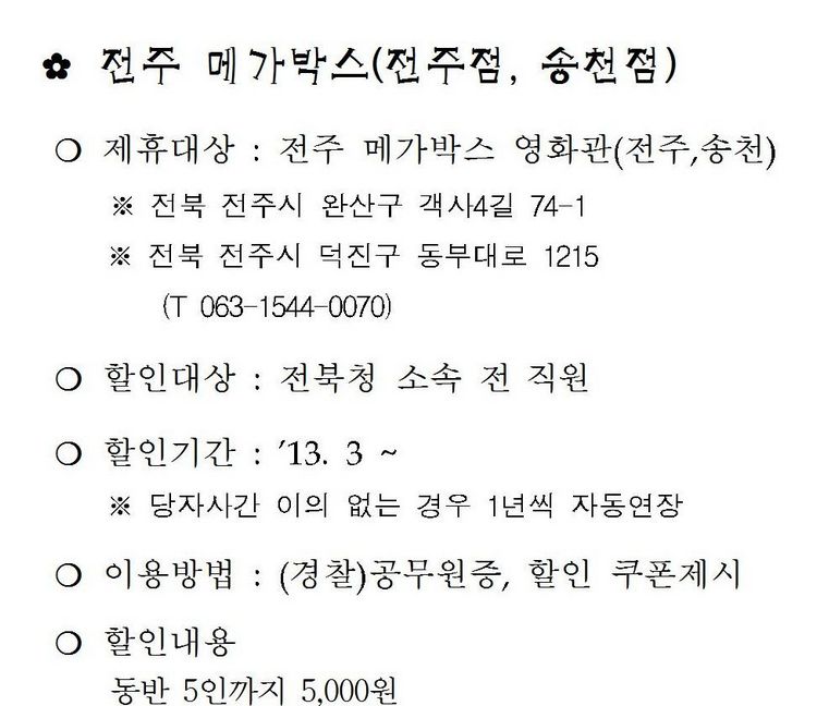 전주 메가박스(영화관) - 5인까지 5000원 (경찰 제휴 할인)