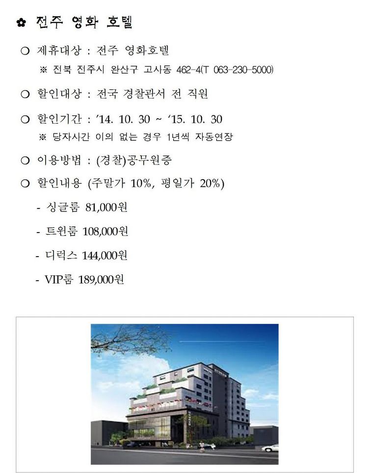 전주영화호텔 - 객실 10~20% (경찰 제휴 할인)
