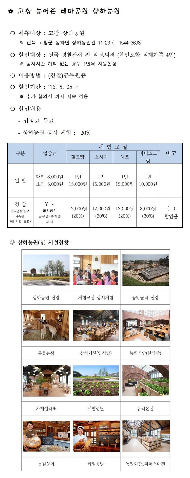 고창 상하농원 - 입장료 무료, 농원 체험료 20%할인 (경찰 제휴 할인)